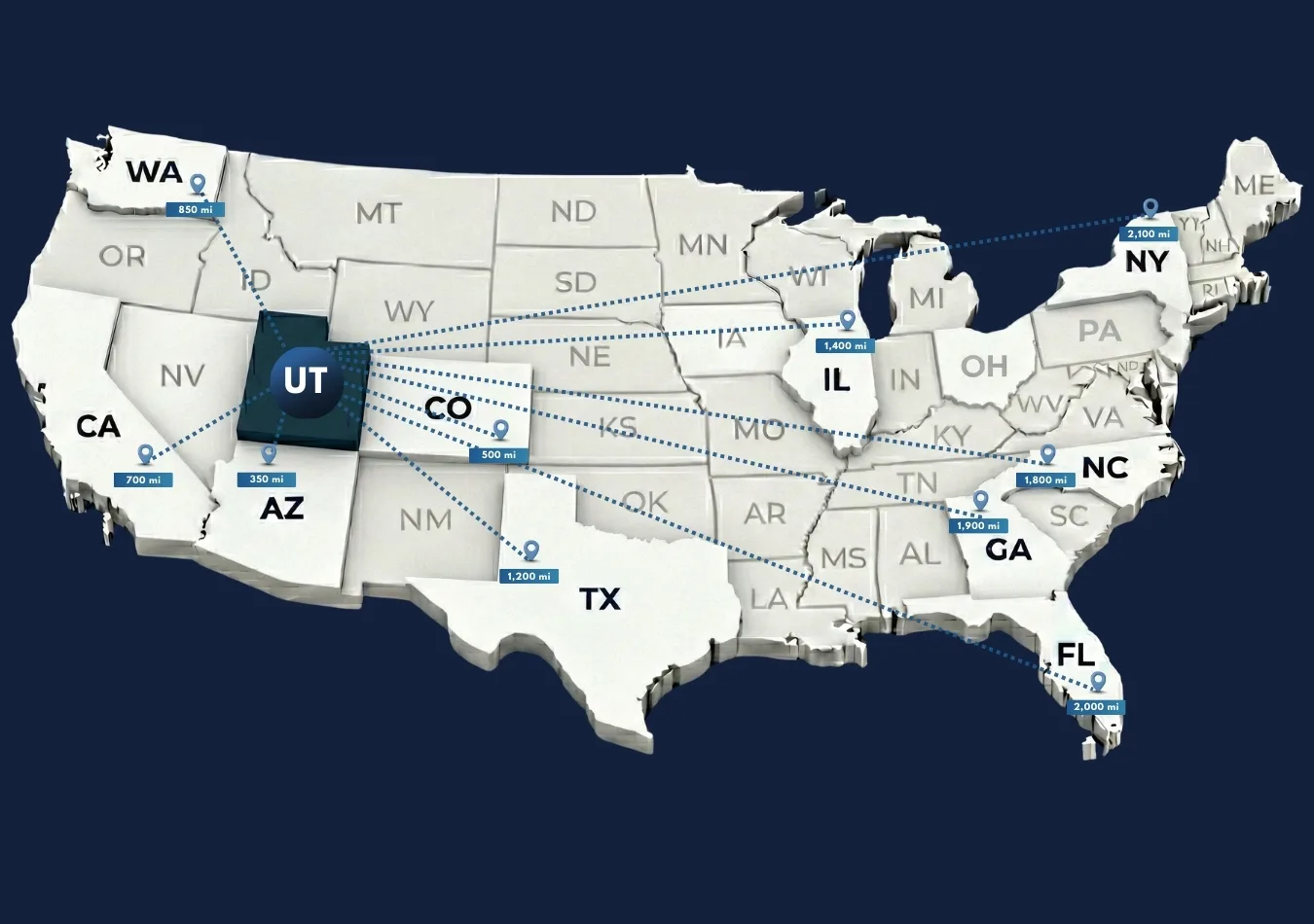 Local shipments within Utah and nearby states, such as Arizona and Colorado, usually take 1-2 days, while long-distance shipments, like those to or from Florida and New York, can take 6-8 days depending on the route.